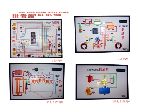 汽車結構展示室。汽車結構展示室將汽車上的零部件采用解剖的形式清晰地展示出來,包括汽油機缸蓋、噴油泵、輸油泵、膜片式離合器、分電器式點火系統(tǒng)、鼓式制動器、渦輪增壓器等零部件展示臺。該實訓室可以承擔《汽車構造》、《汽車檢測與診斷》、《汽車維修工程》等課程的實踐教學任務,零部件展示臺美觀大方、移動方便,可使學生能夠更加直觀地了解汽車各零部件的原理、結構。
