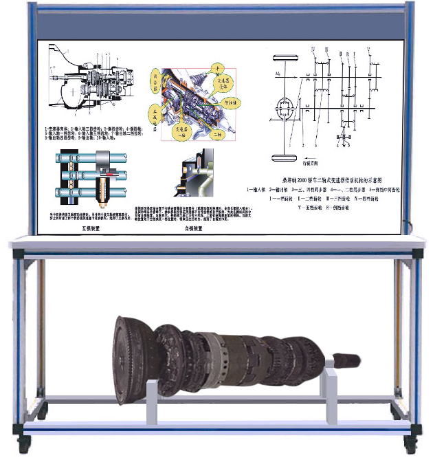 5.設(shè)備配備手動(dòng)變速器結(jié)構(gòu)原理展示面板,展示內(nèi)部零部件名稱(chēng)和內(nèi)部結(jié)構(gòu)。