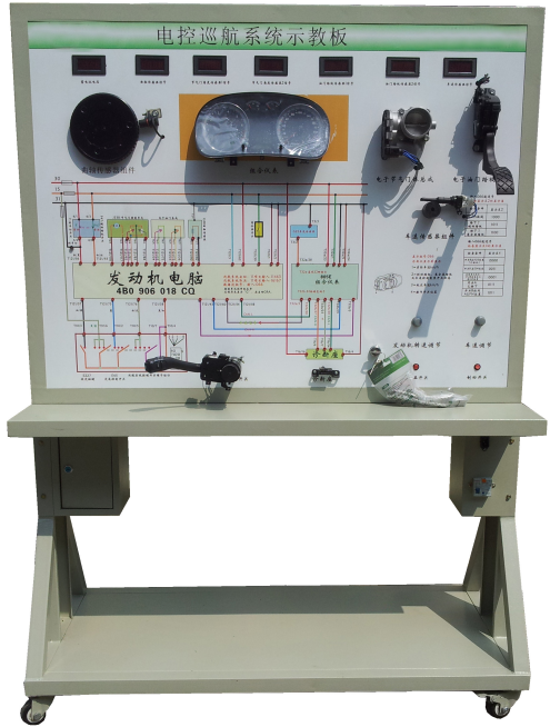 操縱油門踏板位置傳感器可實現(xiàn)節(jié)氣門開度的調,可真實展示電子節(jié)氣門的工作原理和工作過程;操縱巡航控制開關和車速信號,設定巡航狀態(tài),引擎控制單元可對節(jié)氣門開度進行調節(jié),真實演示汽車電子巡航系統(tǒng)的工作過程和工作原理。