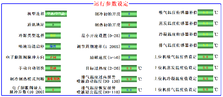 5. 動(dòng)畫(huà)模式:觸摸屏或軟件連接模式下:可顯示壓縮機(jī)排氣溫度、吸氣溫度、冷凝溫度、蒸發(fā)溫度,可根據(jù)溫度實(shí)時(shí)調(diào)節(jié)機(jī)組過(guò)冷度。過(guò)熱度。