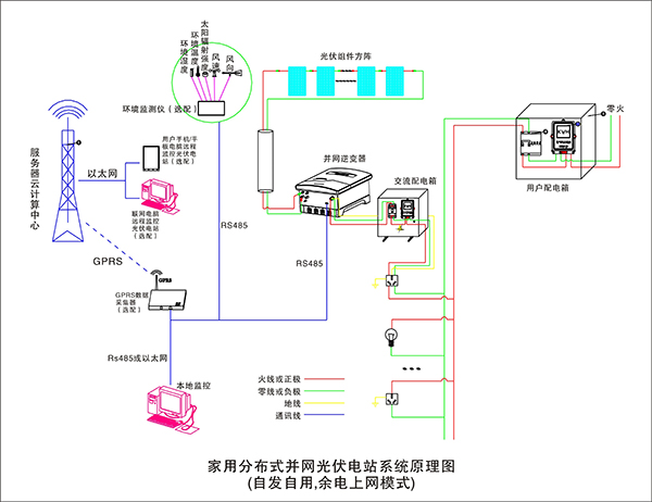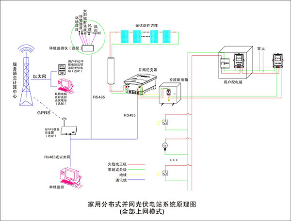 太陽電池組件在太陽光的照射下產(chǎn)生直流電流;太陽能控制器則協(xié)調(diào)太陽能電池板、蓄電池和負載的工作,具有自動防止儲能蓄電池過充電和過放電的功能。蓄電池在系統(tǒng)中的作用就是存儲能量,還能對系統(tǒng)起著調(diào)節(jié)電量、穩(wěn)定輸出的作用。逆變器的作用是將蓄電池的直流電轉變?yōu)檫m合負載使用的正弦波交流電,逆變器輸出的交流電能進入配電柜;在配電柜內(nèi)裝有用于輸出控制、過流保護、防雷保護等器件。