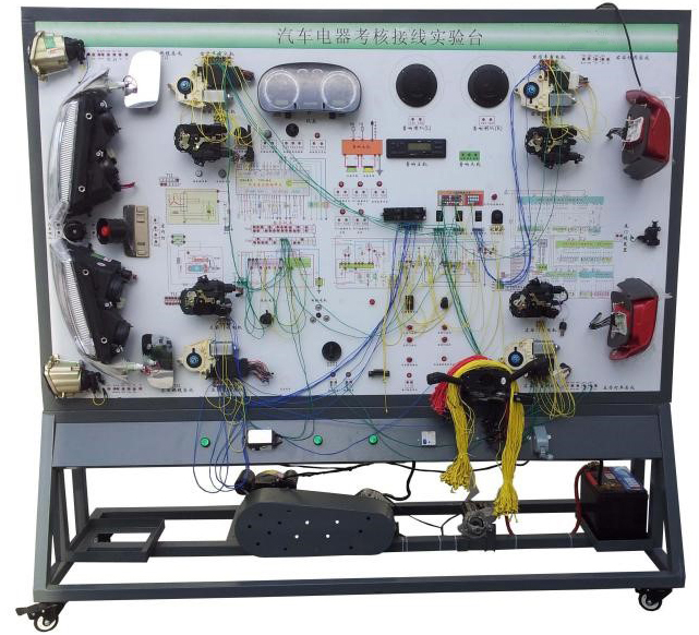 3.設(shè)備面板采用耐創(chuàng)擊、耐污染、防火、防潮的高級鋁塑板,表面經(jīng)特殊工藝噴涂底漆處理;面板打印有永不褪色的彩色電路圖;學(xué)員可直觀對照電路圖和實(shí)物,認(rèn)識和分析汽車整車電器各系統(tǒng)的工作原理。