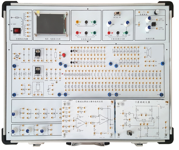 創(chuàng)新型模塊化模擬電路實(shí)驗(yàn)箱由全鋁合金箱體、高性能線性電源和實(shí)驗(yàn)電路板組成。其中實(shí)驗(yàn)電路既可以采用固定功能模塊方式,也可以自行搭建實(shí)驗(yàn)電路,電路原理和元器件符號(hào)清晰,實(shí)驗(yàn)用元器件全部焊裝在線路板的反面,安全可靠,不易損壞。本實(shí)驗(yàn)箱適用于本專(zhuān)院校所有電類(lèi)和非電類(lèi)專(zhuān)業(yè)《模擬電子技術(shù)》、《電子線路》等課程的實(shí)驗(yàn)教學(xué)。