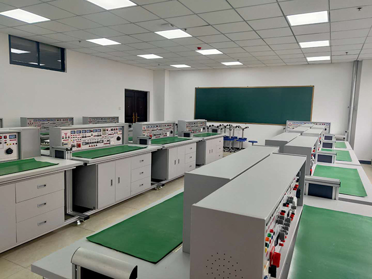電工基礎(chǔ)試驗(yàn)臺(tái)具有較完善的安全保護(hù)措施,較齊全的功能。實(shí)驗(yàn)桌中央配有通用電路板,電路板注塑而成,表面布有九孔成一組相互聯(lián)通的插孔,元件盒在其上任意拼插成實(shí)驗(yàn)電路,元件盒盒體透明,直觀性好,盒蓋印有永不褪色元件符號(hào),線條清晰美觀。盒體與盒蓋采用較科學(xué)的壓卡式結(jié)構(gòu),維修拆裝方便。元器件放置在實(shí)驗(yàn)桌下邊左右柜內(nèi),大大提高了管理水平,規(guī)劃化程度,大大減輕了教師實(shí)驗(yàn)準(zhǔn)備工作。