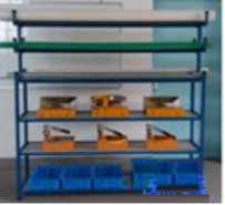 3、模塊中間模塊設(shè)計為貨架形式,配置有大量零件工具盒,適合安裝實訓(xùn)使用。