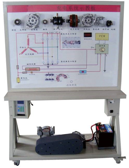 3.示教板面板采用耐創(chuàng)擊、耐污染、防火、防潮的高級鋁塑板,表面經(jīng)特殊工藝噴涂底漆處理;面板打印有永不褪色的彩色電路圖;學員可直觀對照電路圖和實物,認識和分析汽車充電系統(tǒng)的工作原理。