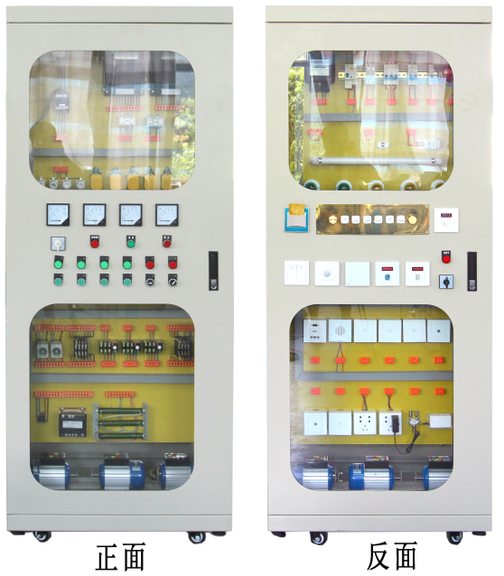 前后開(kāi)門(mén)四玻電氣柜、柜內(nèi)按裝架、實(shí)訓(xùn)操作板、接線裝置、漏電斷路器、熔斷器、電流互感器、單相電度表、床頭控制面板、日光燈、白熾燈、單聯(lián)開(kāi)關(guān)、單相異步電動(dòng)機(jī)、門(mén)鈴、插卡取電插座、請(qǐng)勿打擾插座、聲光控延時(shí)開(kāi)關(guān)、人體自動(dòng)感應(yīng)開(kāi)關(guān)、觸摸延時(shí)開(kāi)關(guān)感應(yīng)開(kāi)關(guān)、無(wú)線遙控開(kāi)關(guān)、調(diào)光開(kāi)關(guān)、燈座、插座、分配器、有線電視信息端座、音視頻信息端座、電話信息端座、網(wǎng)絡(luò)信息端座、三相四線有功電度表、接觸器、中間繼電器、時(shí)間繼電器、熱繼電器、行程開(kāi)關(guān)、按鈕、信號(hào)燈、萬(wàn)能轉(zhuǎn)換開(kāi)關(guān)、電壓表、電流表、三相電機(jī)、聲光報(bào)警器、檢修開(kāi)關(guān)、報(bào)警選擇開(kāi)關(guān)和故障開(kāi)關(guān)等。